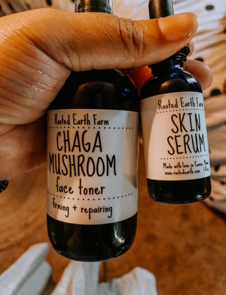 - RootedEarth Farm- an herbal apothecary, herb farm and botanical skincare shop. I’ve purchased the Chaga Toner, Goddess Tea, Chaga Tea, Perfume. tinctures…almost the entire shop. As I write this, I am waiting for a couple of items to arrive in the mail. The chaga toner is a skincare staple. My face freaks out without it.